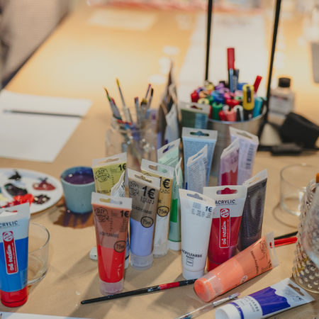 At Casa Rojo Barcelona, I guided an open, free-flow pot-painting workshop where participants were invited to explore their own creative process. With no strict rules or predefined results, everyone was encouraged to play with color, experiment with textures, and let intuition lead the way.